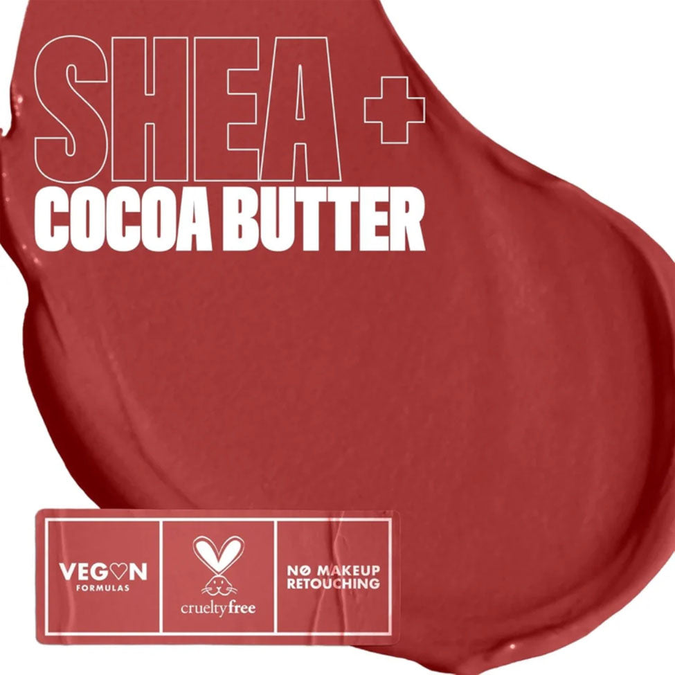 • The matte liquid lipstick with a plant-based formula contains slowly whipped shea butter and cocoa butter.