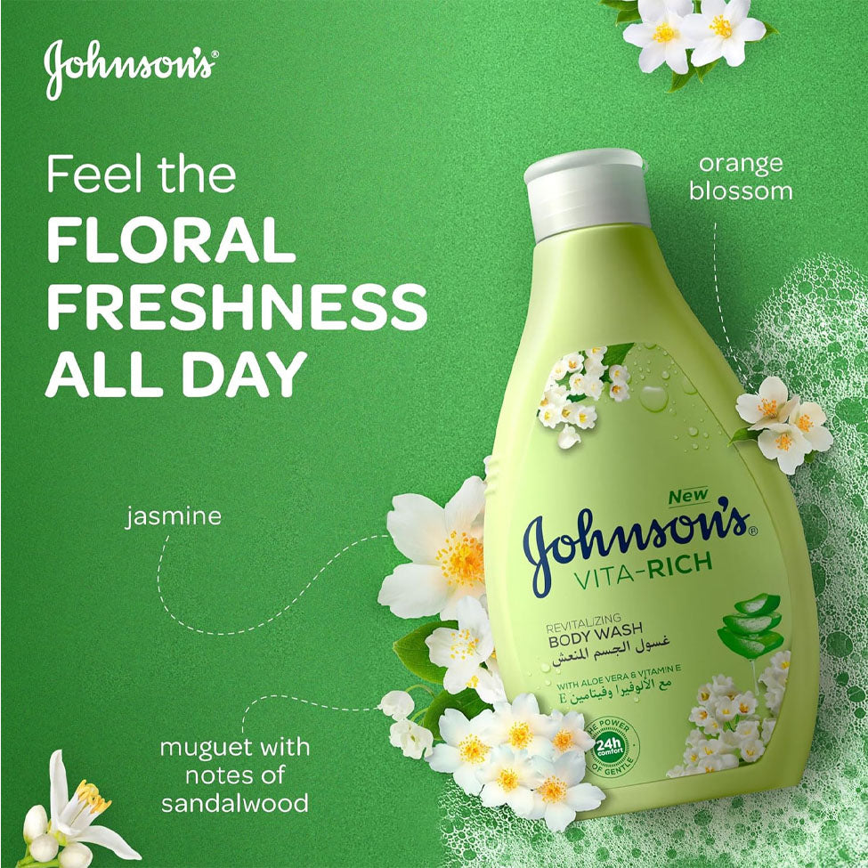• Johnson's Vita Rich Refreshing Body Wash cleanses the skin and removes impurities while moisturizing your skin and keeping it comfortable for 24 hours.