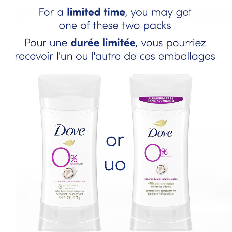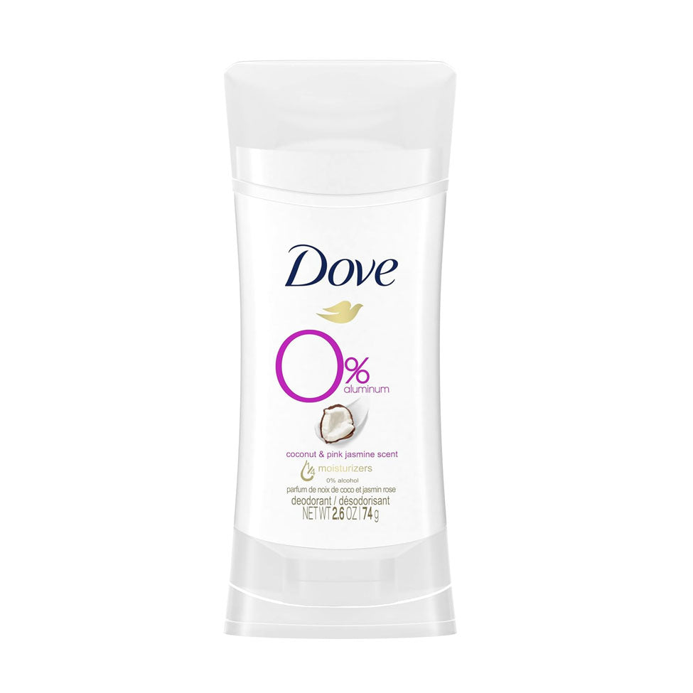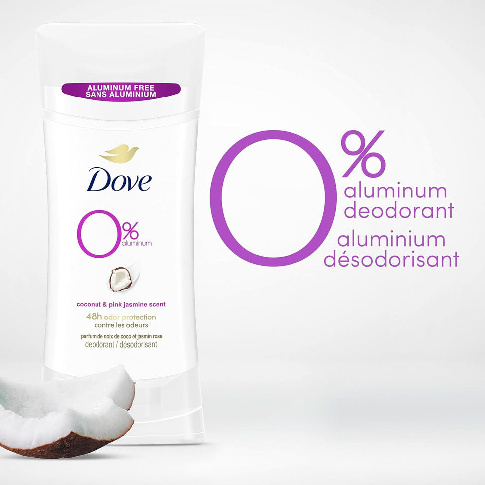 • Dove deodorant contains 0% aluminum and 0% alcohol