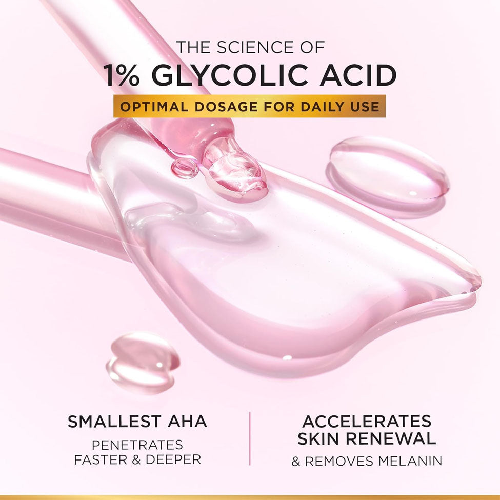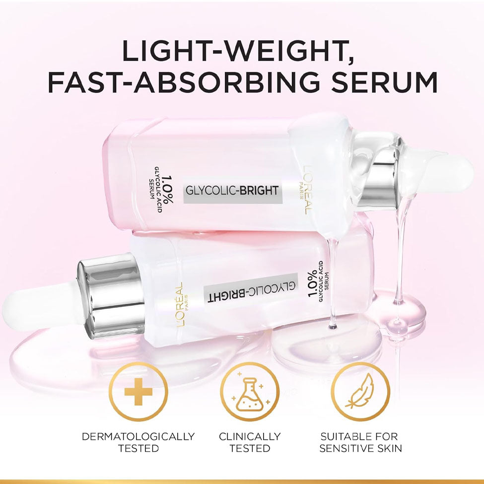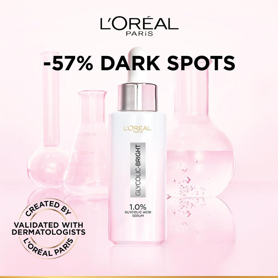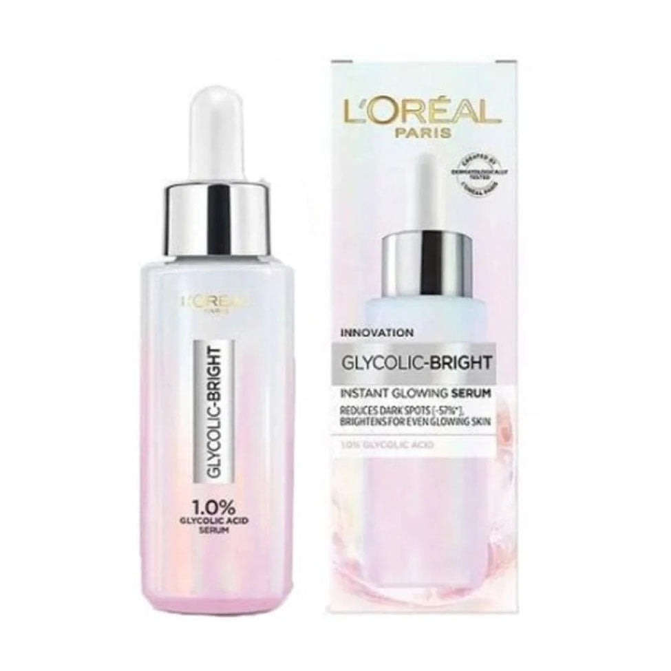 L'Oréal Glycolic Bright Serum provides an instant glow and visible freshness with its concentrated formula containing 1% pure glycolic acid.