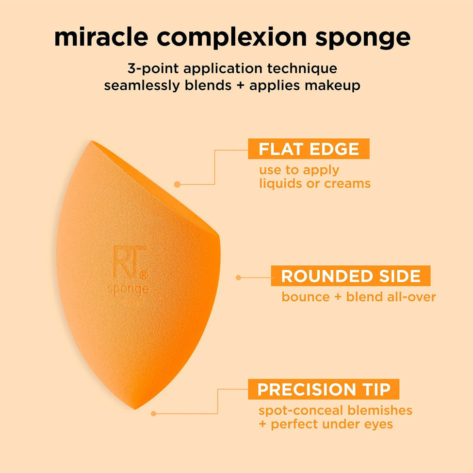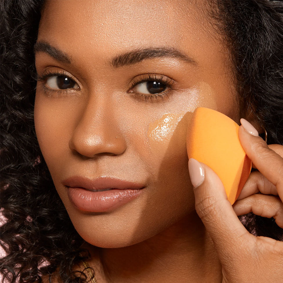 Use the Miracle Complexion Damp Sponge to create a wet and dry shine for full coverage