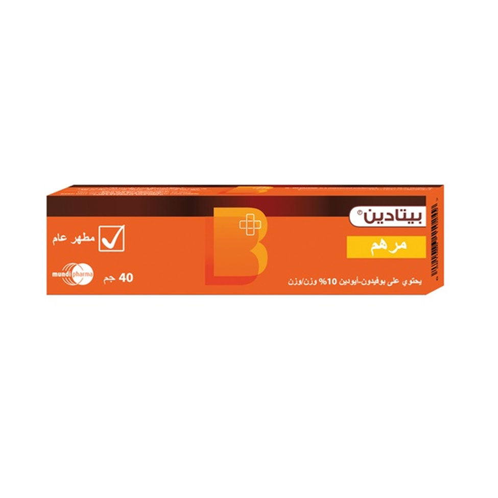 Betadine Antiseptic Ointment (40 g) is used to disinfect wounds and burns thanks to the antibacterial agent povidone-iodine.