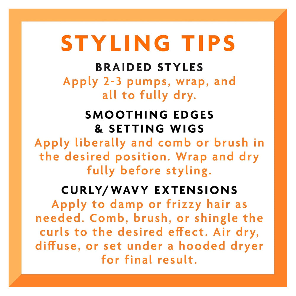 Used to set braided hairstyles and wigs, refresh braids and curly hair extensions, and lay edges - without residue.