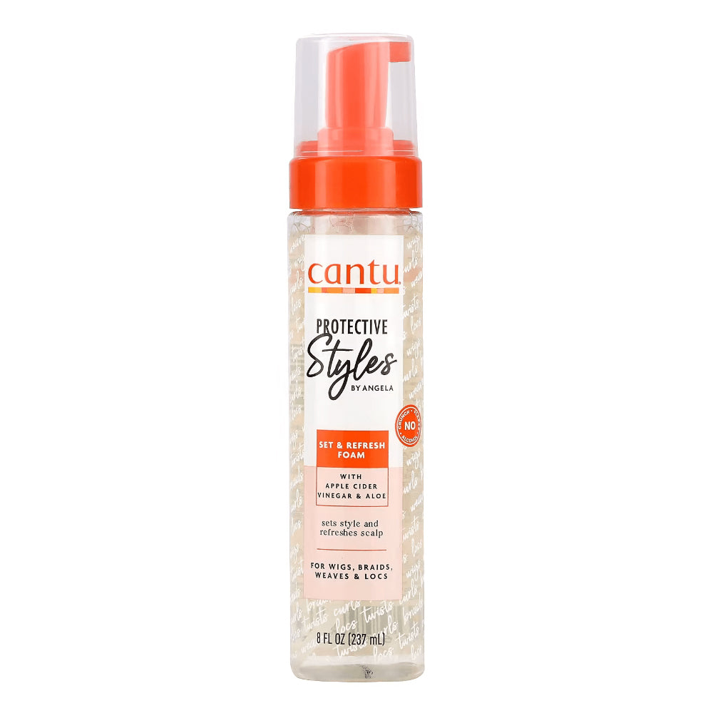 Tangle-free, flake-free, alcohol-free with apple cider vinegar and aloe vera defines style and refreshes the scalp for wigs, braids, and twists for use on natural hair.