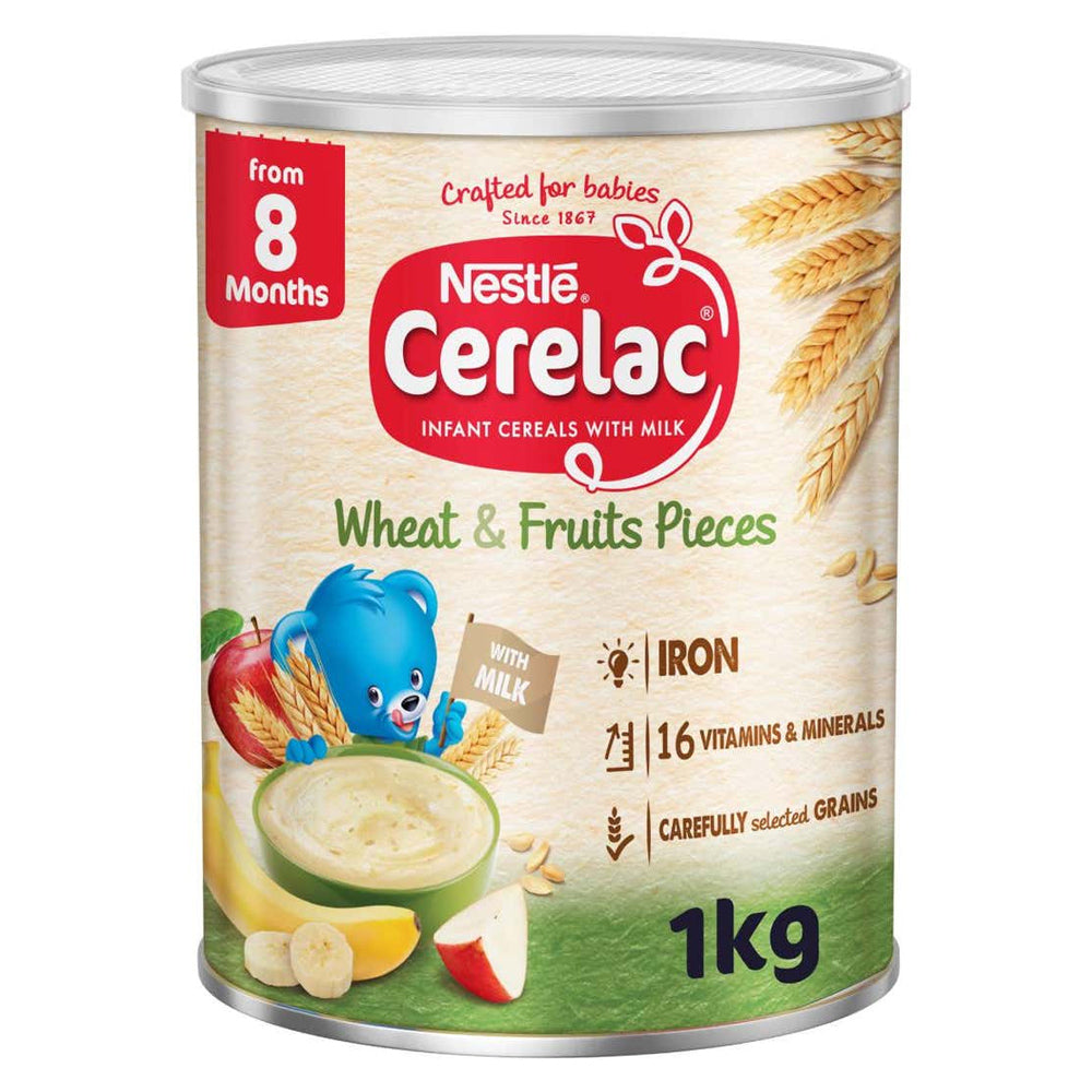 Cerelac cereal with fruit pieces is made of real fruits and four types of grains (oats, wheat, corn, and rice). It also contains bifidus culture (a type of probiotic similar to those found in the digestive system of infants). Rich in iron .