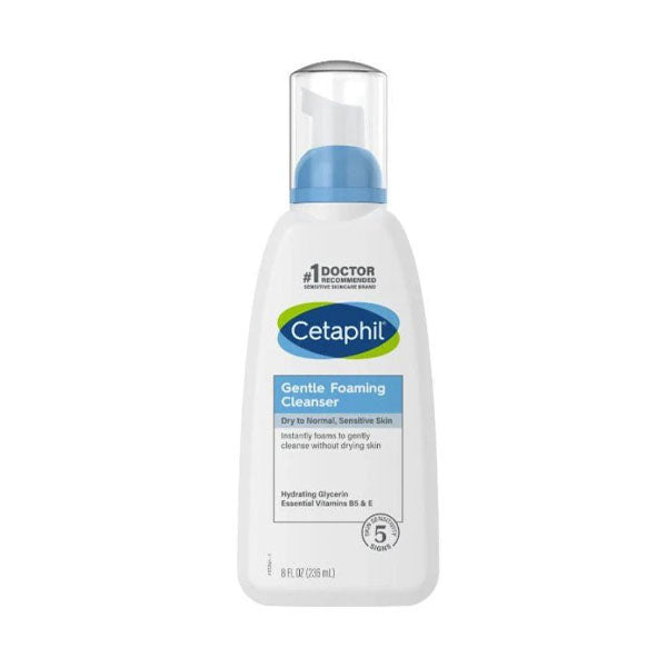 Cetaphil Gentle Foaming Cleanser for All Skin Types 236 ml Now enjoy pure skin by using Cetaphil Gentle Foaming Cleanser for all skin types 236 ml. It is one of the appropriate means to remove impurities, makeup, oils and excess facial fats to maintain a clean face and clear skin from pimples and impurities. Cetaphil Gentle Foaming Cleanser for All Skin Types 236 ml Maintains the freshness and softness of the skin, due to its richness in vitamin E and B5, which are essential elements for the freshness and softness of the skin. You can get this lotion through a pharmacy store that offers various Cetaphil products at the best prices.
