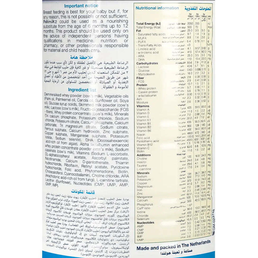 Infant formula to follow lactation derived from cow's milk provides all the nutritional needs of children in the weaning stage from 6 to 12 months by providing essential nutrients to complete the child's diet during weaning (guarantees a balanced diet and strong immunity during the weaning period)