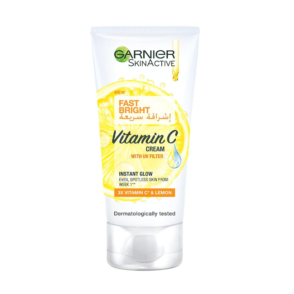 This fast brightening day cream is enriched with vitamin C and lemon, known to fade spots and brighten skin. Absorbing faster to minimise the appearance of 3 types of spots - dark spots, UV spots and pimple spots, the cream delivers a lighter complexion in one week and instantly brightens skin for a long-lasting glow. Formulated with UVA/UVB known to protect skin from the sun's harmful rays. See results from week 1
