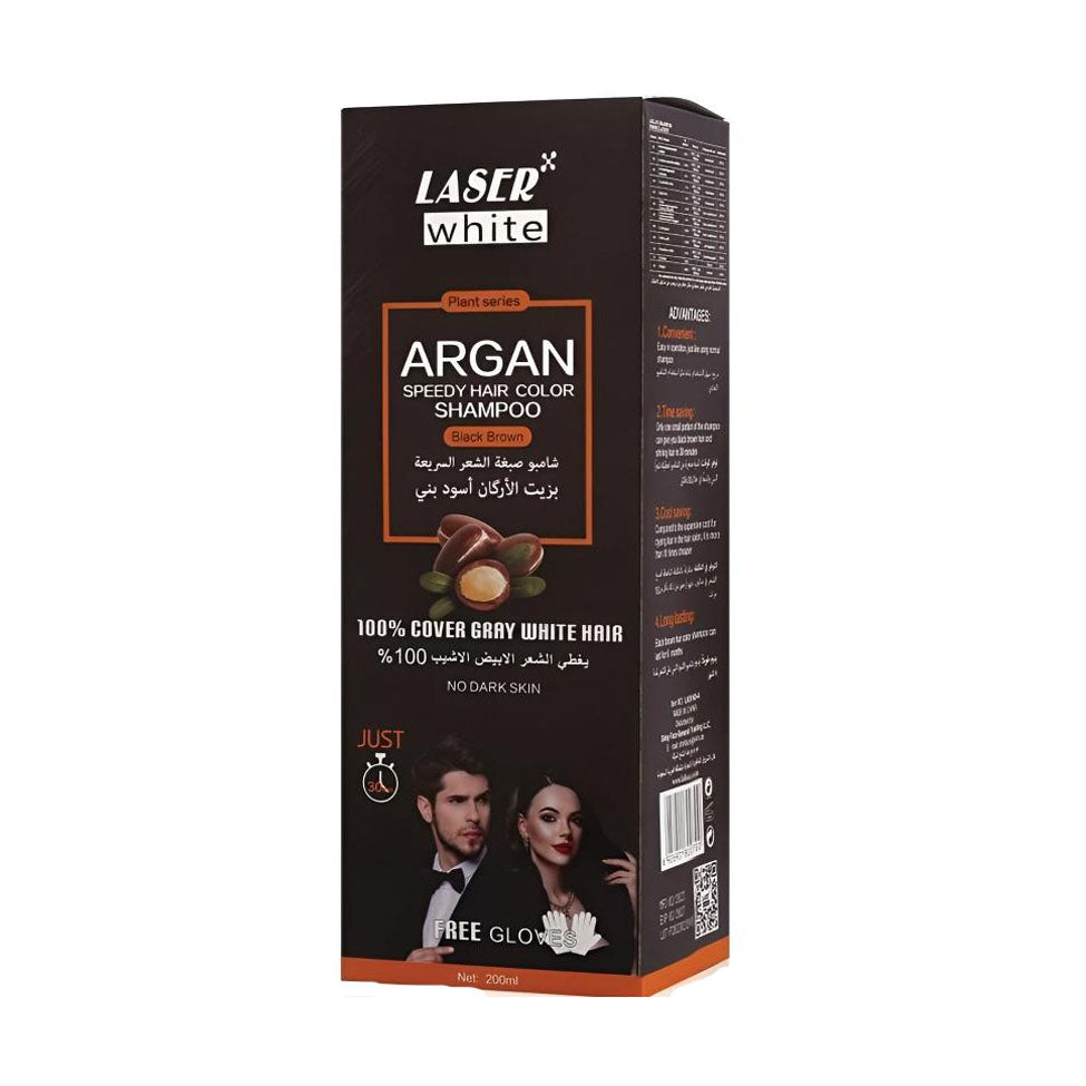Laser White Shampoo Hair Dye with Argan Oil Black Brown 200 ml