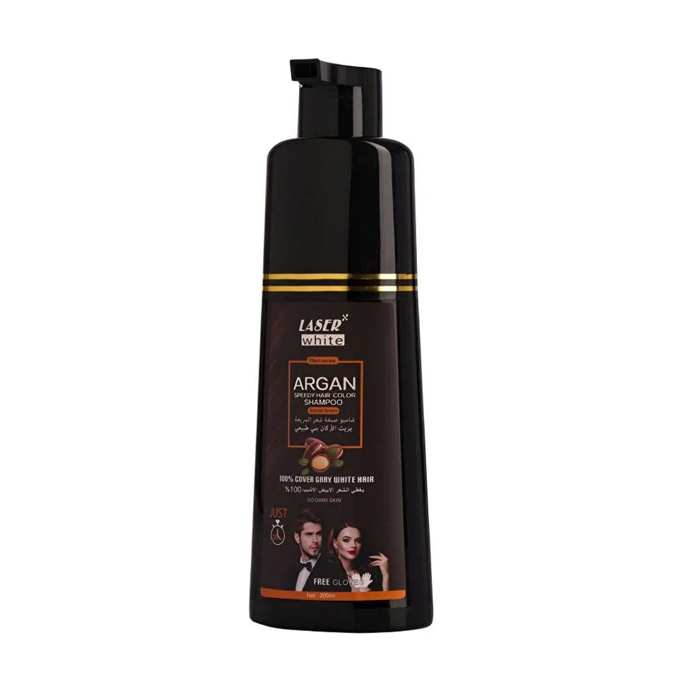 Laser White shampoo hair dye with argan oil gives you an attractive natural brown color with nourishing benefits that enhance hair health. It is designed to provide effective coverage for gray hair and improve the overall appearance of hair.