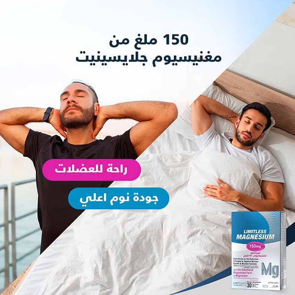 Limitless Magnesium 150 mg provides fast-absorbing magnesium per tablet for superior absorption and support.