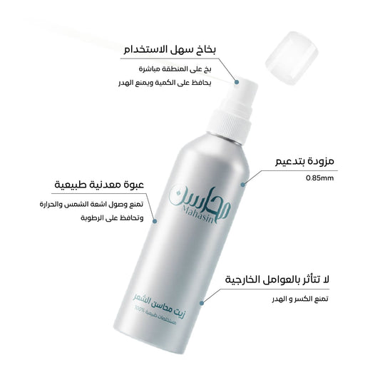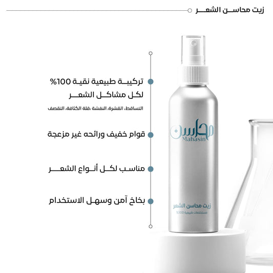 زيت محاسن الشعر يمثل الخيار الأقوى لمن يبحث عن منتجات العناية بالشعر الطبيعية والمتعددة الاستخدامات، موفرًا تجربة عناية بالشعر لا مثيل لها، تجمع بين الجودة، الفعالية، والطبيعية أربع خطوات سهلة وحيوية لإطلاق العنان للمعان وقوة شعرك: لتبدأ يومك بشعر أكثر بريقاً وجمالاً مع زيت محاسن الشعر