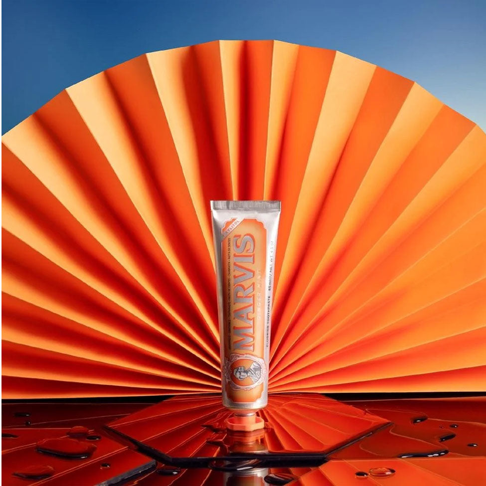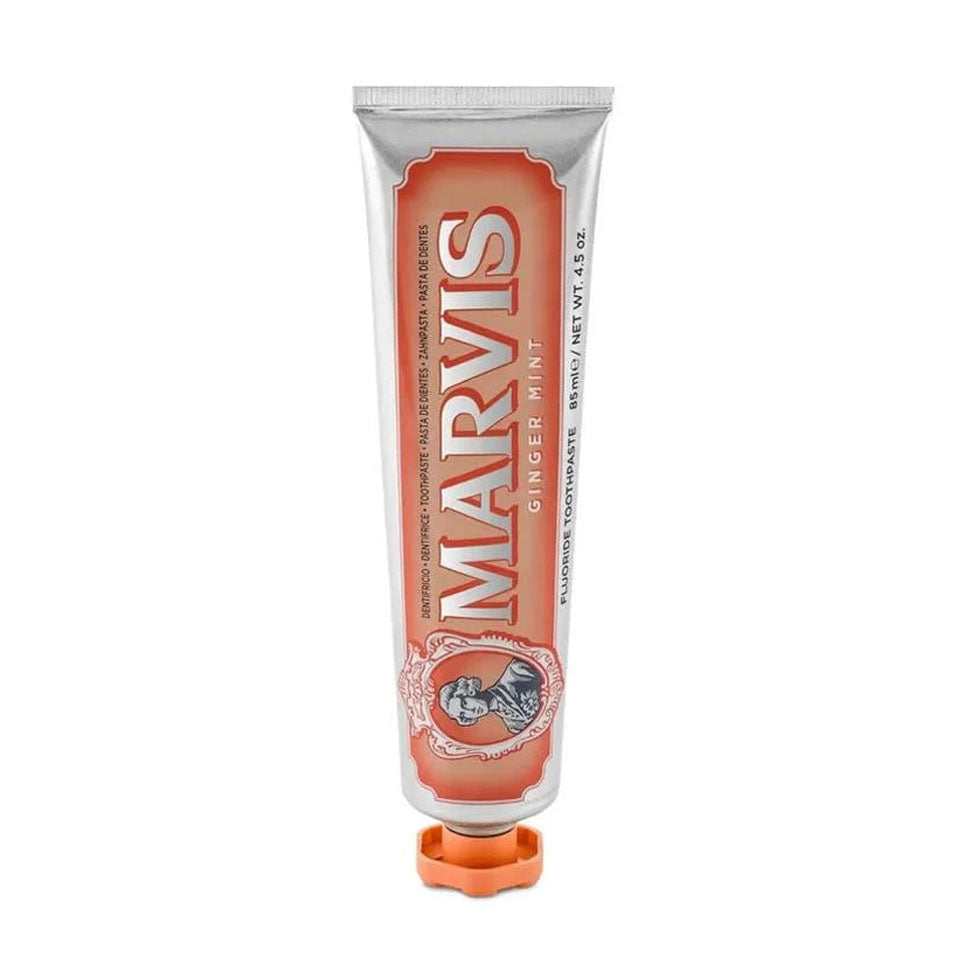 Marvis Ginger-Mint Toothpaste, a luxury toothpaste from Italy, combines the spicy flavor of ginger with the refreshing coolness of mint, providing a unique and enjoyable oral hygiene experience. Its creamy formula contains fluoride that helps prevent cavities, fight tartar, and keep your breath fresh all day long.