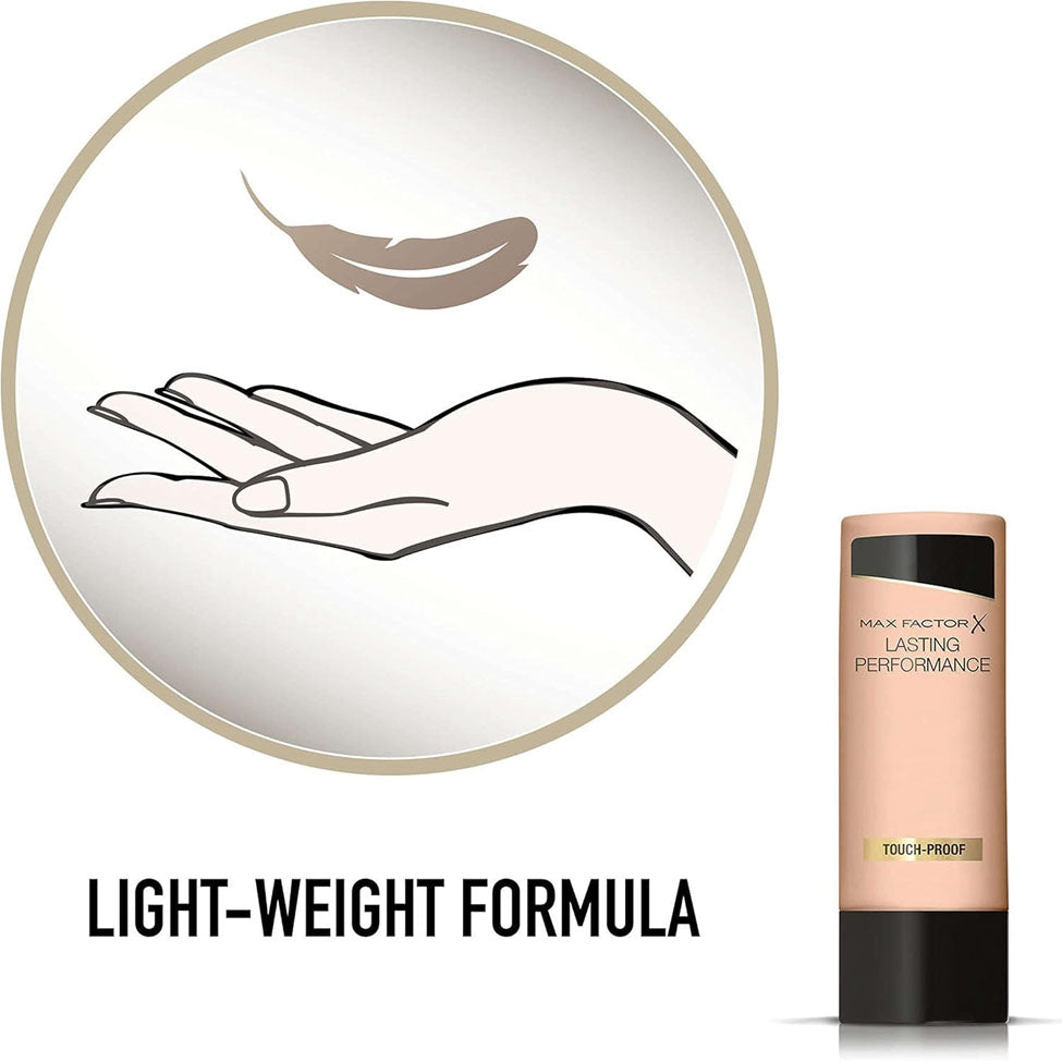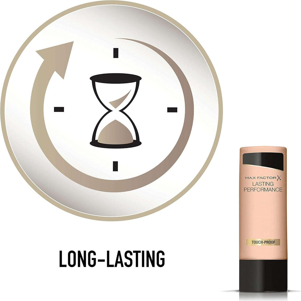 Max Factor Lasting Performance Foundation guarantees coverage that lasts for 8 hours. With film-forming technology, it completely covers and leaves the skin looking fresh and gorgeous. The specially formulated lightweight silicones and heavy-duty Touch Resistant system stand up to any amount of rubbing or touching - the foundation won't stain your clothes. The effective water-in-silicone emulsion guarantees high coverage, lasts up to 8 hours, and provides a natural look without fading or fading. Your natural look will stay radiant from morning to evening. This foundation contains no fragrance or oils and is non-comedogenic, which means it won't clog pores.