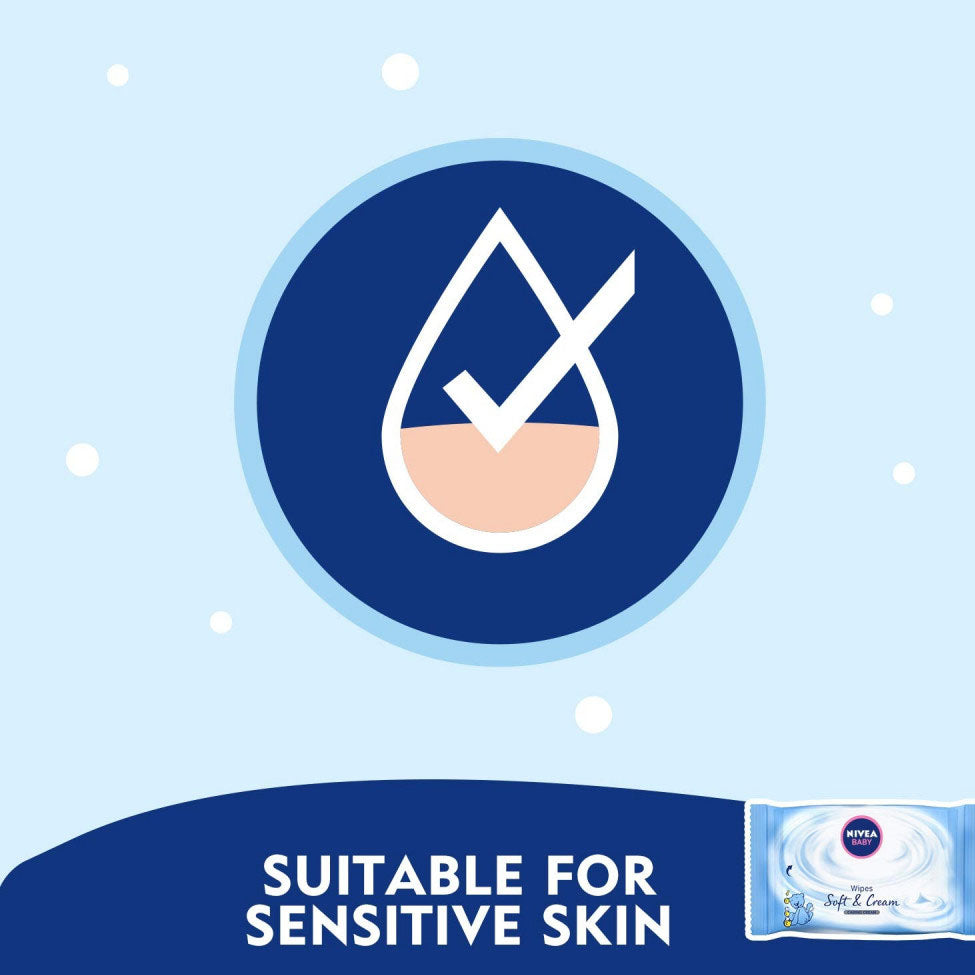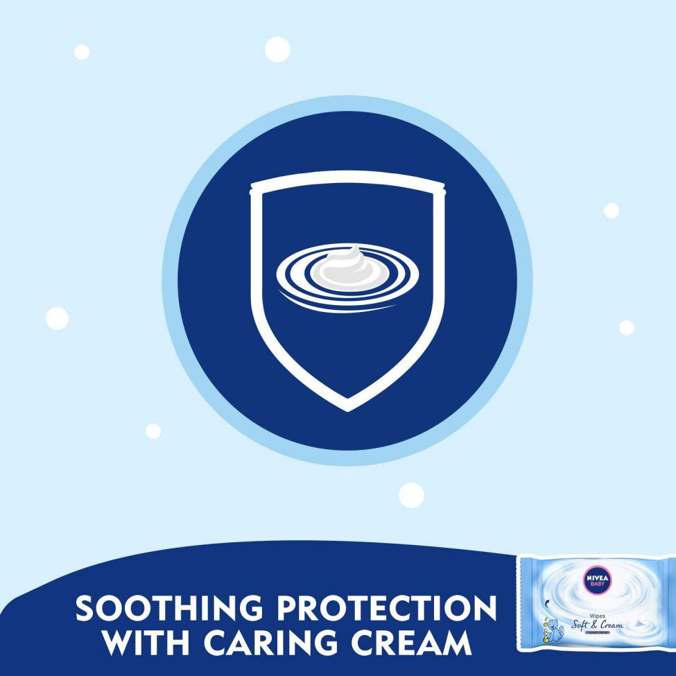 NIVEA Baby Soft Wipes & Cream gently cleanse and give your baby's stressed and irritated skin immediate soothing care. Soaked in a soft cream to gently care.