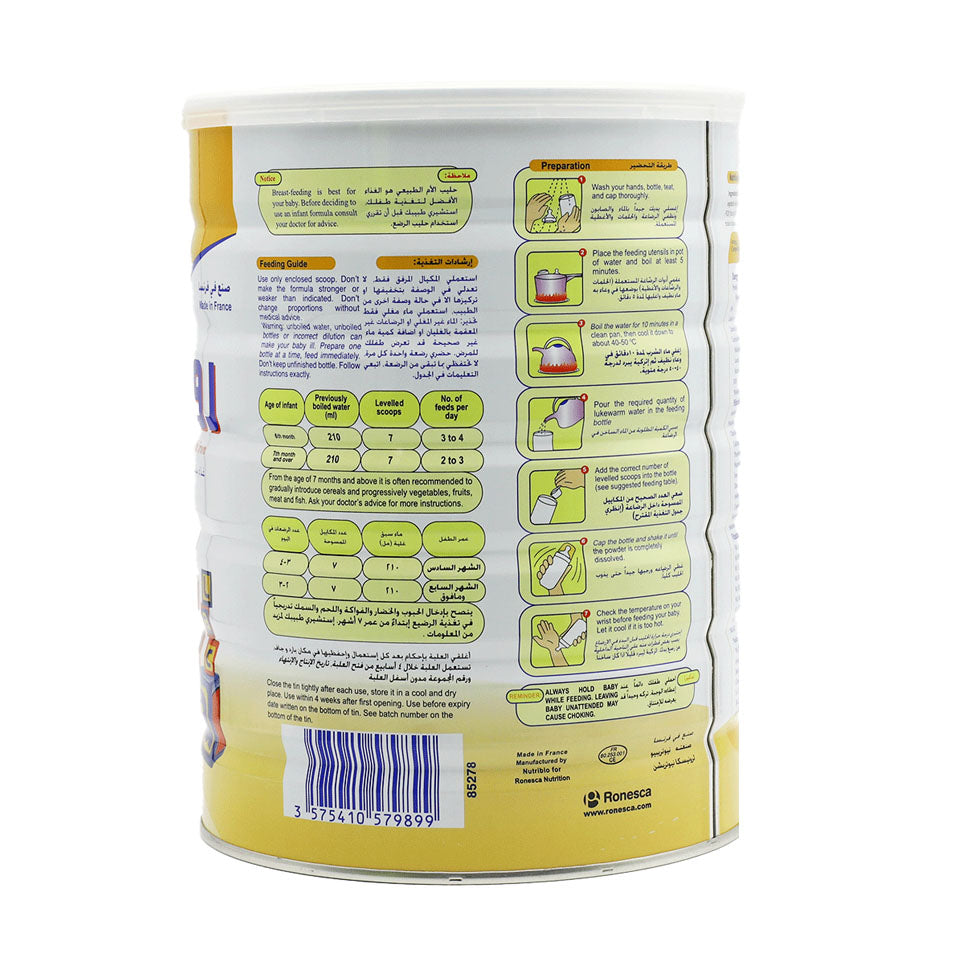 Ronalac 2 Follow-up milk for infants from 6 to 12 months, fortified with iron and provides the child with the calories necessary for growth and activity, and fortified with immunobooster components to support the immune response and protection, and it is fortified with prebiotics to improve the growth of beneficial bacteria, easy to digest and light on the digestive system without any digestive problems.And the Ronalac formula 2 is nutritionally balanced and provides all vitamins and minerals, meeting increased needs for calories, calcium, iron, protein and other nutrients to ensure optimal visual, mental and psychological development