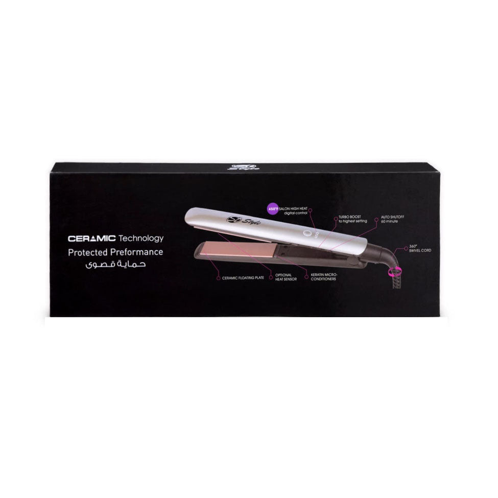 Style straightener for straightening curly protein No. 230\nHair straightener for keratin and protein ceramic technology\nSuitable for hair treatment with keratin and protein\nCeramic technology for maximum protection\nFast heating