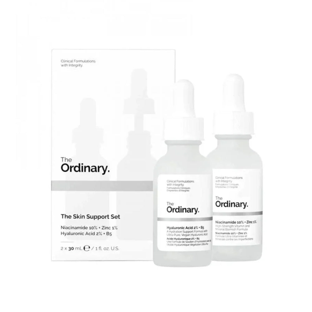 The Ordinary "Skin Support Set" combines two of the most popular serums: 2% Hyaluronic Acid + B5, and 10% Niacinamide + 1% Zinc, to provide deep hydration and a noticeable improvement in skin appearance.