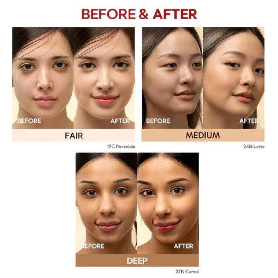 • Conceals redness, dark circles, pigmentation, dark spots, fine lines, and wrinkles while maintaining smooth and radiant skin.