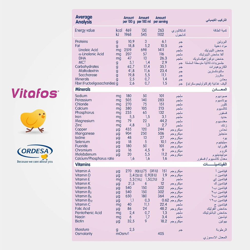 Vitaphos is a complete and balanced food supplement that ensures healthy growth and development. The special formula is rich in proteins, vitamins, minerals and many other ingredients that meet the needs of a growing baby.
