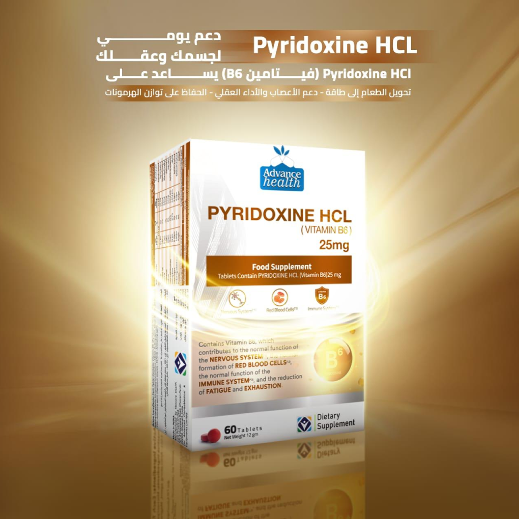 البيريدوكسين هيدروكلورايد ( بي 6) 25 مجم من ادفنس هيلث - 60 قرص