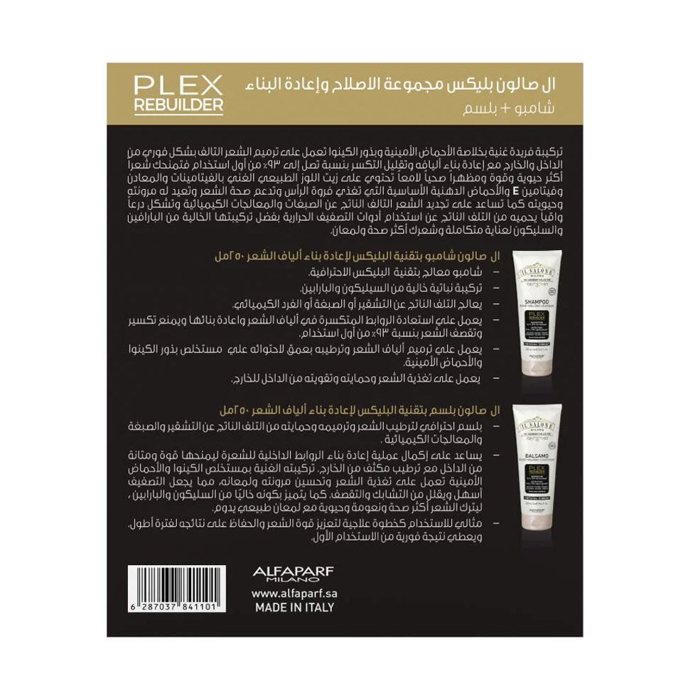 طقم متكامل للعناية بالشعر التالف والمجهد، يساعد على إصلاح الشعر التالف وتقوية البنية الداخلية من الجذور حتى الأطراف. يحتوي على شامبو لطيف ينظف الشعر دون تجريده من الزيوت الطبيعية، وبلسم يغذّي الشعر ويعيد له النعومة والمرونة. تركيبة الطقم تعمل على تقوية الشعر ومنع التقصف، مع تحسين ملمسه وإضفاء لمعان صحي.