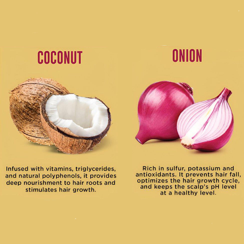 • البصل الذي يحتوي على مضادات الأكسدة والفيتامينات، يساعد في تقوية بصيلات الشعر وتحفيز نموه.