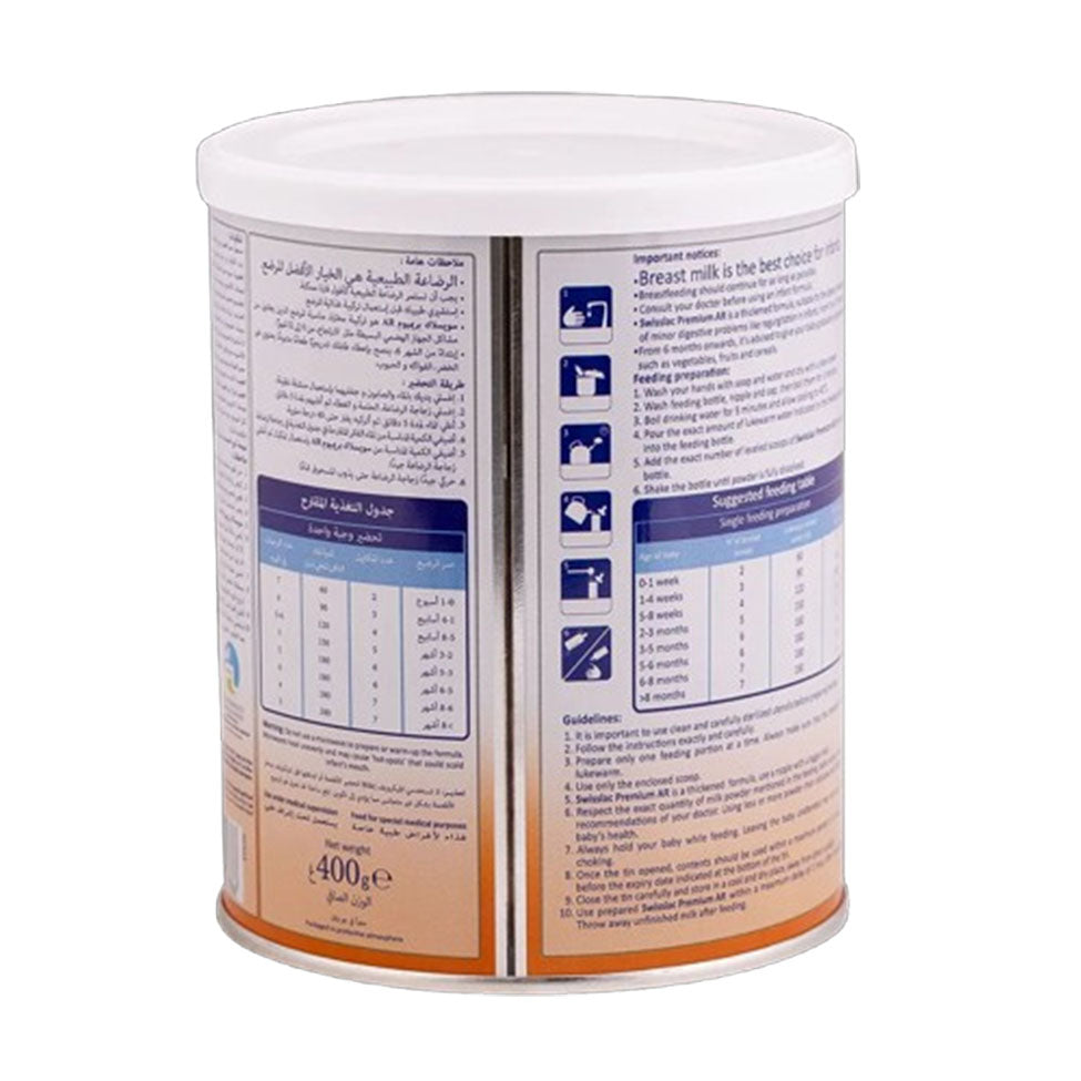 AR هو تركيبة حليب للأطفال الرضع الذين يعانون من الارتجاع. يجب استخدام هذا المنتج تحت إشراف طبي.