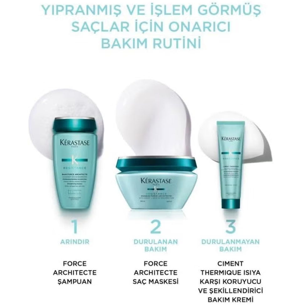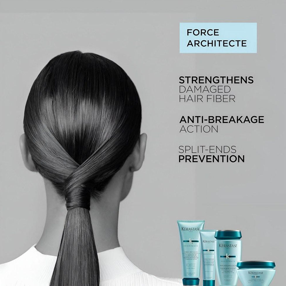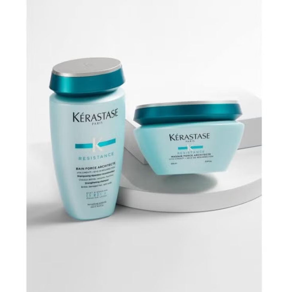 امنحي شعرك عناية احترافية تعيد له قوته من أول غسلة مع شامبو كيراستاس ريزستنس باين فورس أركيتيكت من Kérastase، المصمم خصيصًا للشعر الضعيف والمتضرر والمعرّض للتكسر. تركيبة متطورة تنظّف فروة الرأس بلطف، وتعمل في الوقت نفسه على إعادة بناء ألياف الشعر وتقويتها من الداخل ليبدو أكثر صحة ولمعانًا.