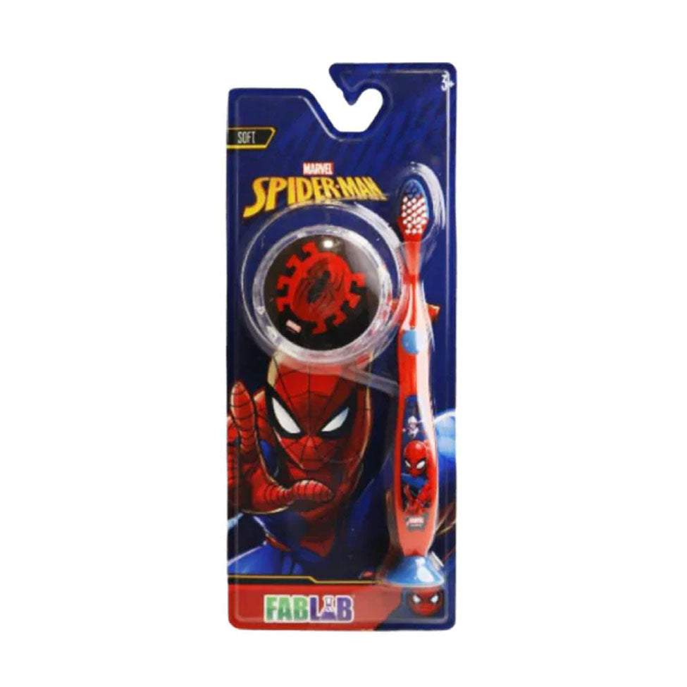 تقدم فاب لاب فرشاة أسنان مميزة بتصميم سبايدرمان المحبب للأطفال مع لعبة مرفقة تجعل تنظيف الأسنان تجربة ممتعة ومشوقة. شعيرات ناعمة مصممة خصيصاً لأسنان ولثة الأطفال الحساسة، مع مقبض مريح يسهل على الأطفال الإمساك به واستخدامه بشكل صحيح.