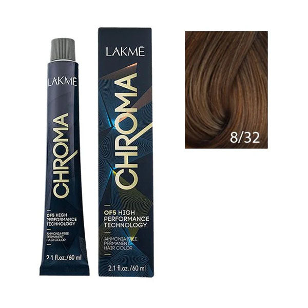 لاكمي كروما صبغة شعر باللون الأشقر الفاتح الذهبي القزحي 8/32 تمنح شعرك لونًا مشرقًا بلمسة ذهبية متألقة، مع تركيبة لطيفة تحافظ على صحة الشعر وتمنحه مظهرًا حيويًا.