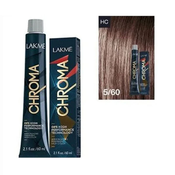 صبغة لاكمي كروما بدون أمونيا بدرجة كستنائي فاتح بني 5/60 تمنح شعرك لونًا غنيًا وطبيعيًا مع تغطية مثالية للشيب، بتركيبة لطيفة تحافظ على صحة الشعر.