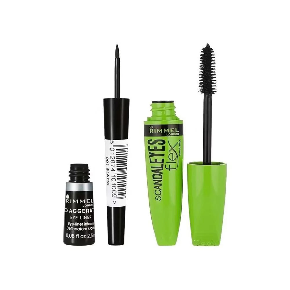 ماسكارا سكاندال آيز فليكس مع قلم تحديد العيون السائل الغليظ الثنائي المثالي للحصول على مظهر عيون جريء ومثير.