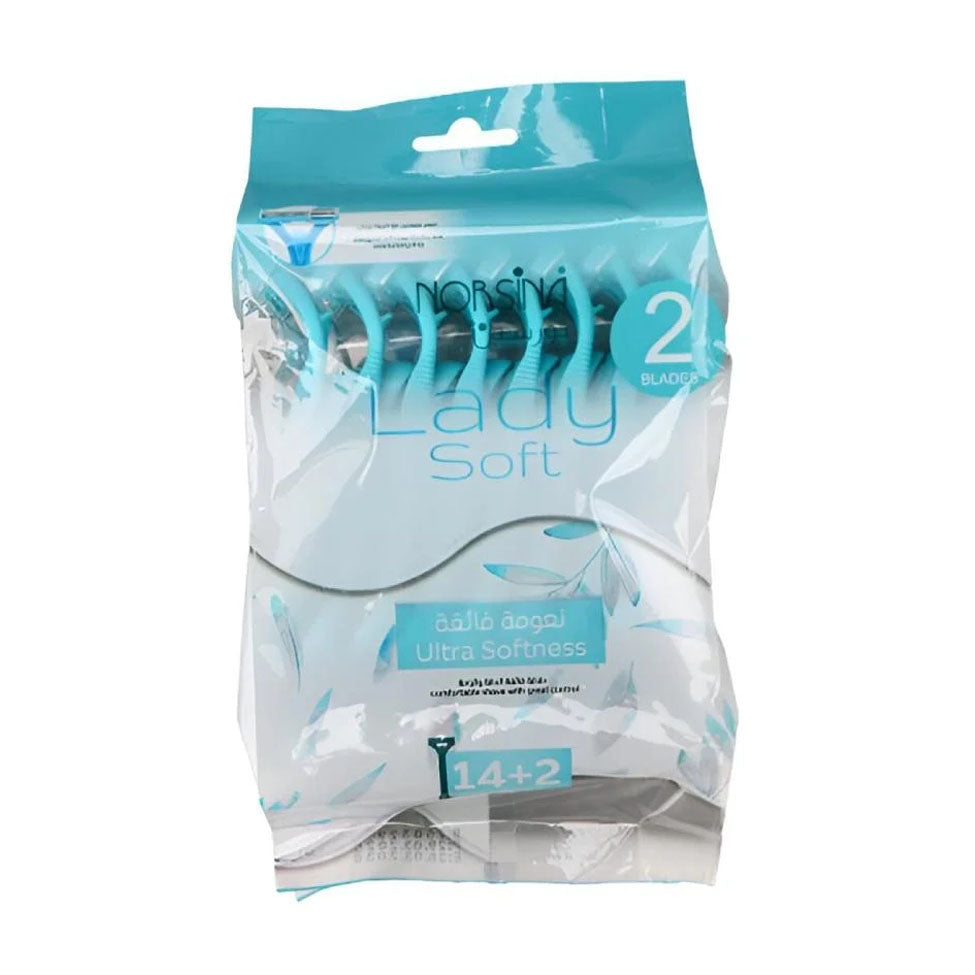 نورسينا امواس حلاقة نسائية ليدي سوفت نعومة فائقة ازرق شفرتين 14+2