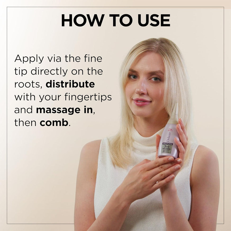 • رشي اللوشن مباشرة على جذور الشعر الرطب، ثم صففي باستخدام مجفف الشعر لنتائج مثالية.