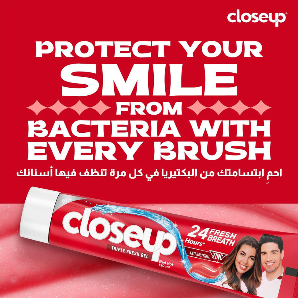 احصل على ثقة من الابتسامة الرائعة والتنفس مع هلام نشط جديد عن قرب تحتوي على مبيضات دقيقة تبيض أسنانك والفلورايد برفق لتمنحك أسنانًا أقوى لها حماية من أمراض الفم مصممة للعمل .كل يوم القتال الجراثيم الحفاظ على شعورك بالانتعاش والابتسام طوال اليوم، ويُمكنك شراء معجون أسنان كلوس اب ريد هوت من خلال صيدلية.كوم أفضل صيدلية أونلاين في السعودية.