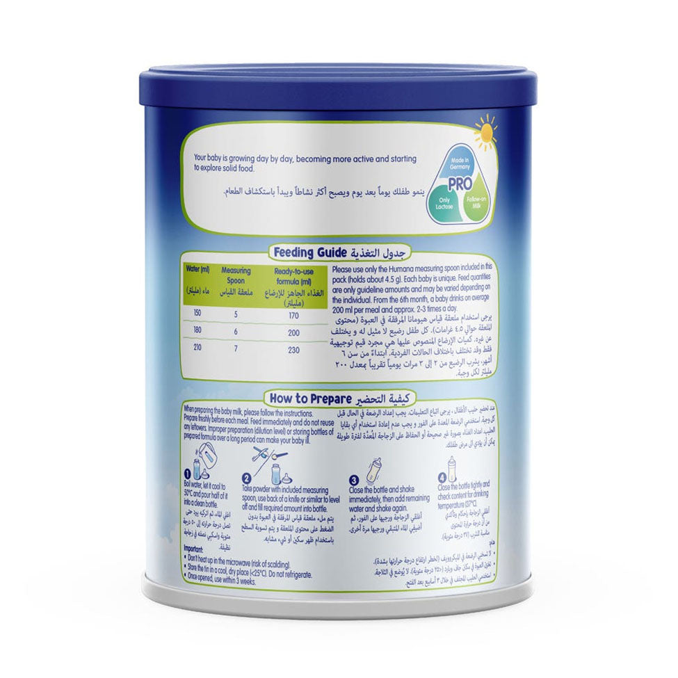 تركيبة حليب هيومانا 2 للرضع من ٦ حتى ١٢ أشهر. حليب هيومانا مصنوع في ألمانياوخالي من المواد المعدلة وراثياً و يحتوي على برو بالنس™.