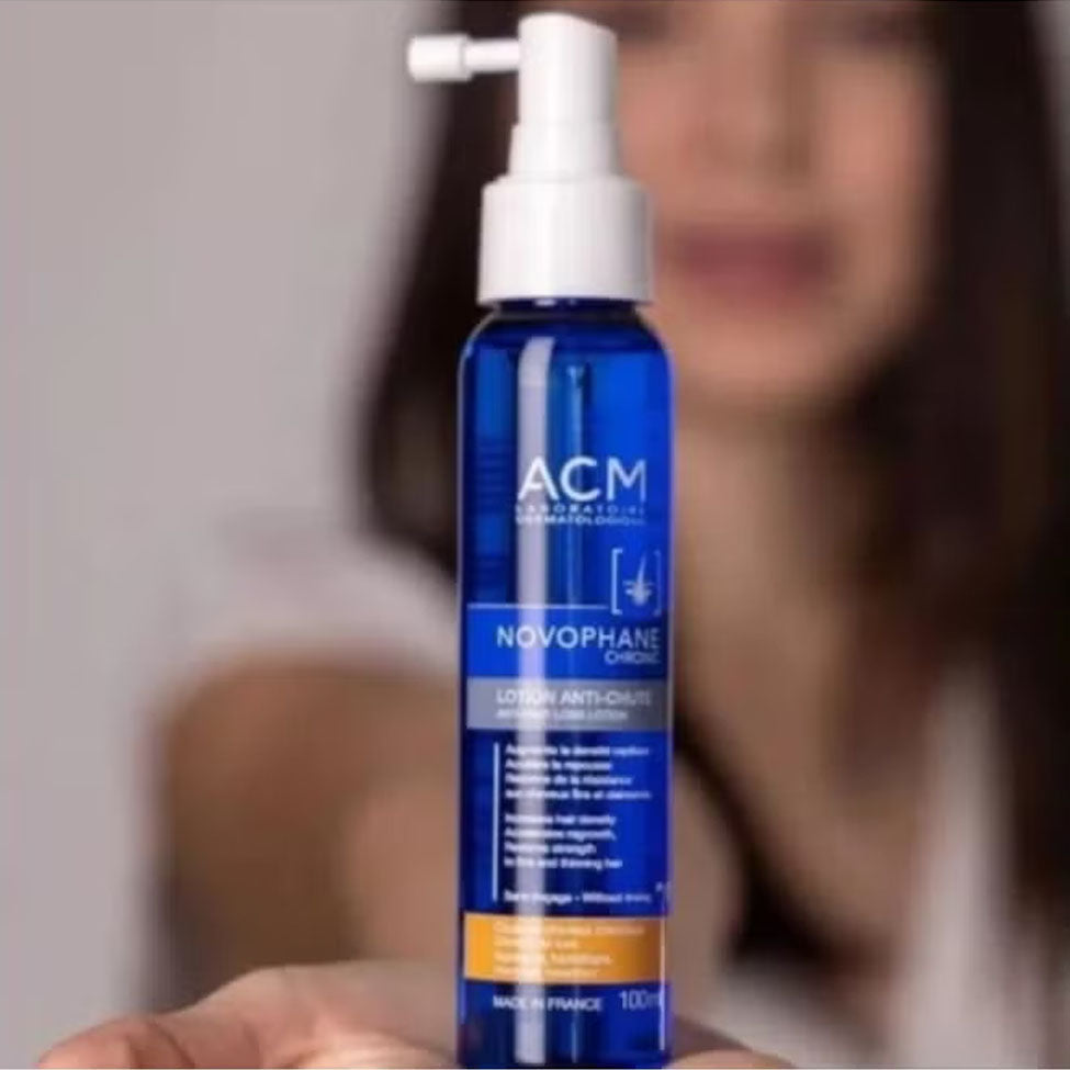 اي سي ام نوفوفان كرونيك لوشن المضاد لتساقط الشعر هو علاج فعّال مصمم خصيصًا لمواجهة تساقط الشعر المزمن لدى الرجال والنساء، سواء كان ناتجًا عن عوامل هرمونية أو وراثية.