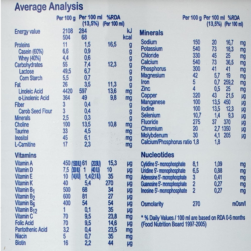 • يدعم النمو البدني والعقلي بفضل تركيبته الغنية بالـ DHA وARA لدعم تطور الدماغ والرؤية.