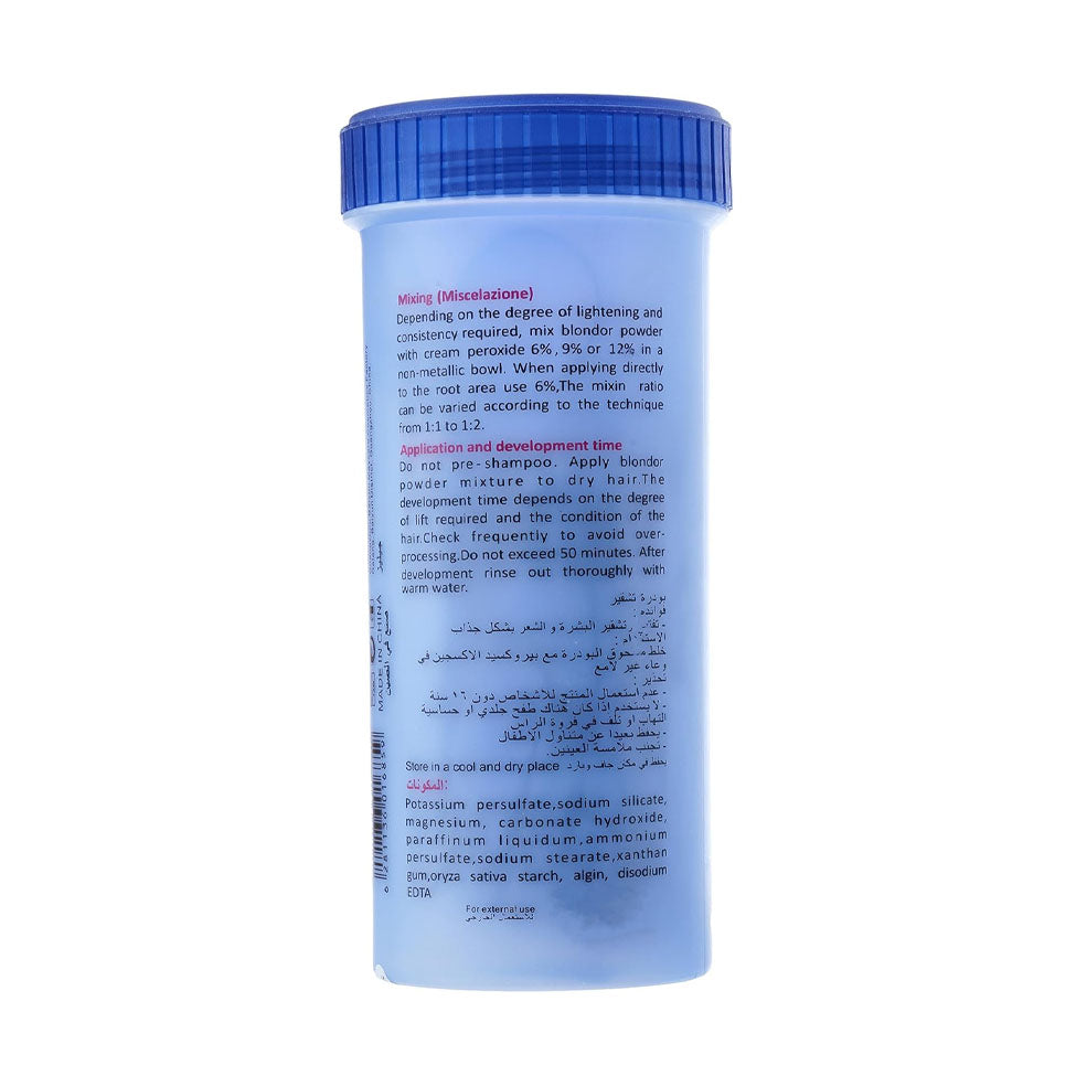 بودرة تشقير فعالة تساعد على تفتيح الشعر بدرجات متقدمة مع تقليل ظهور اللون النحاسي. تركيبتها الزرقاء تعمل على موازنة الألوان أثناء عملية التشقير للحصول على نتيجة أكثر صفاءً ولمعانًا.