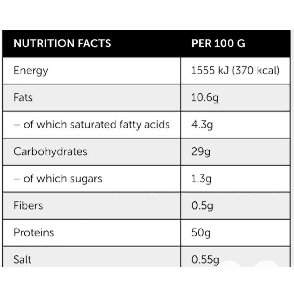 يحتوي كل لوح على 50٪ بروتين ويحتوي على أقل من 1 جم سكر.