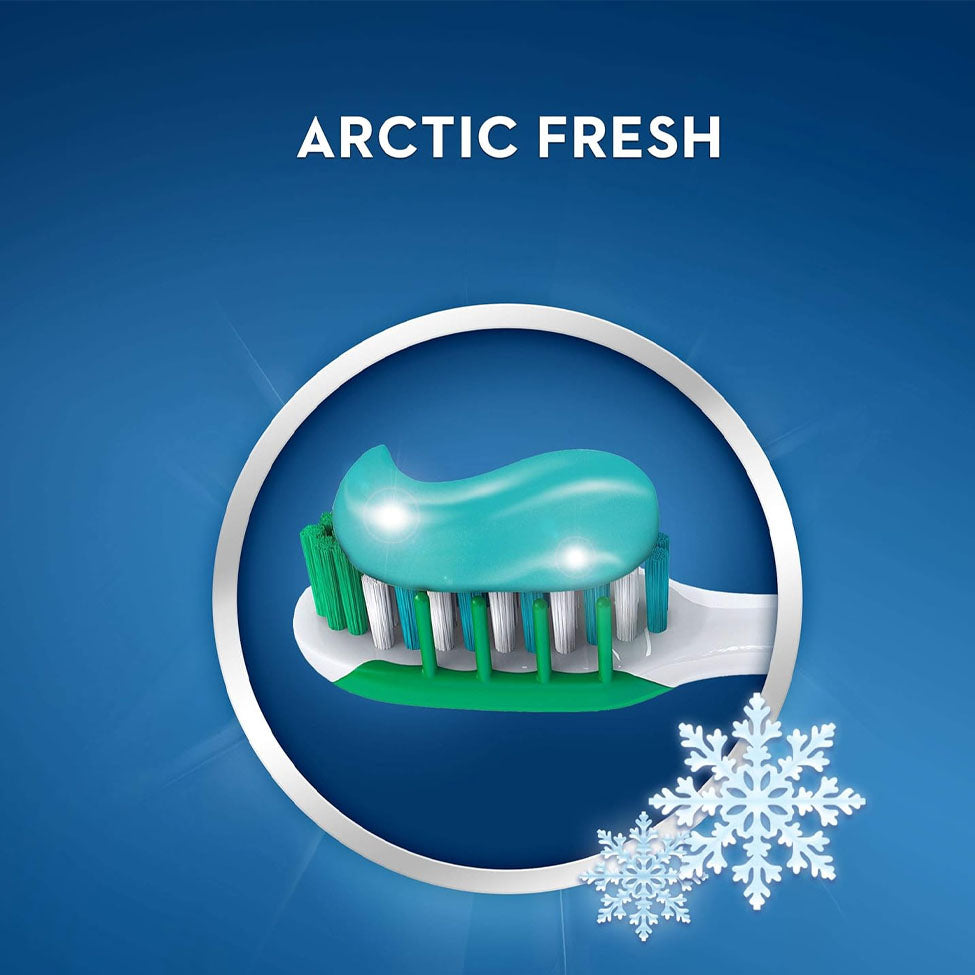 • يُستخدم كمية من المعجون على فرشاة أسنان، وينصح أن تكون أورال بي، لزيادة الاعتناء بالفم.