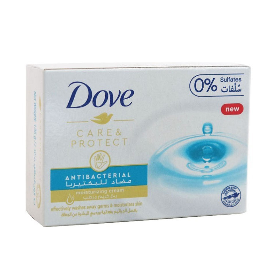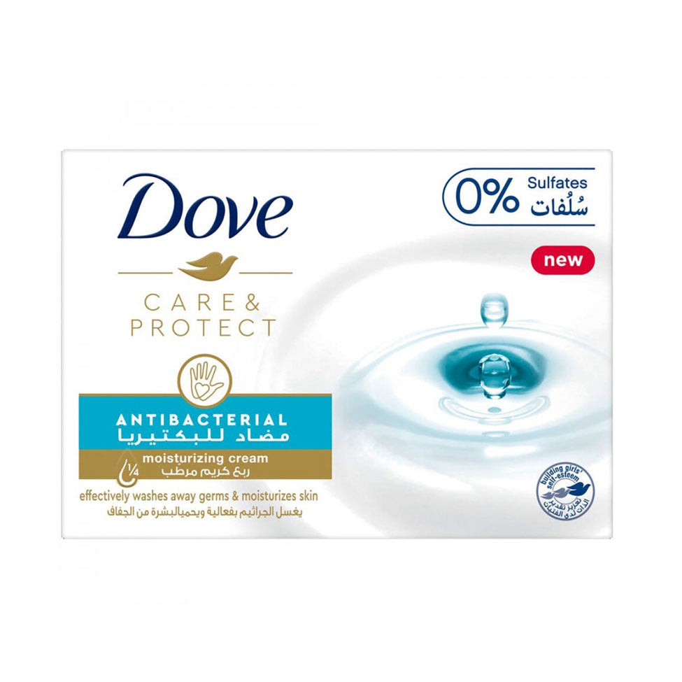 دوف صابون عناية وحماية مضاد للبكتيريا صُمم لمنحك عناية مضاعفة، حيث يقضي على الجراثيم ويترك البشرة نظيفة وناعمة بفضل تركيبته المرطبة، التي تحتوي على ربع كريم مرطب يحافظ على صحة البشرة وترطيبها اليومي.