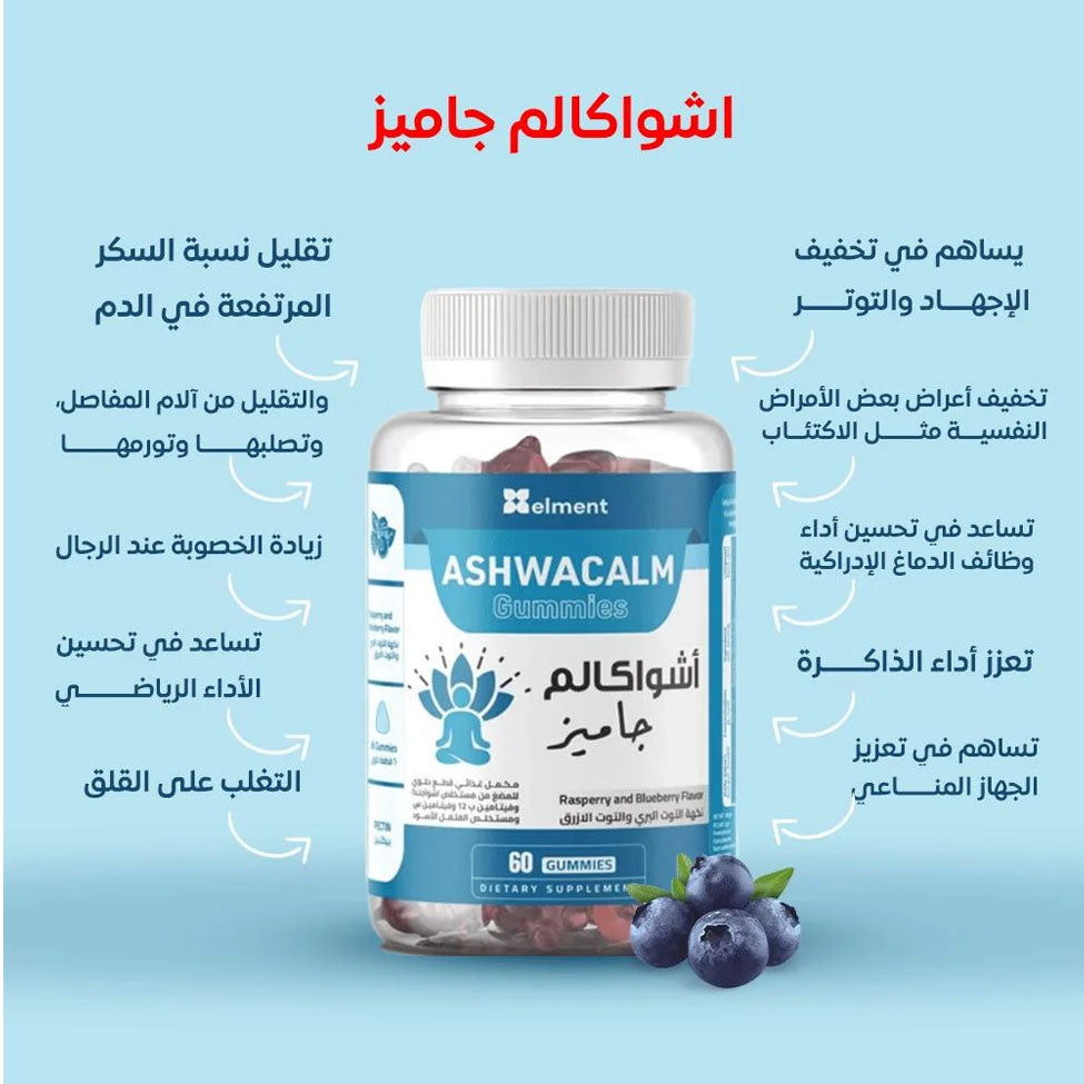 ايلمنت أشواكالم بمستخلص الأشواجندا مع فايتمن B12 و فايتمن C مكمل غذائي يساهم في تخفيف الإجهاد والتوتر ويعمل على التغلب على القلق تخفيف أعراض بعض الأمراض النفسية مثل الاكتئاب.