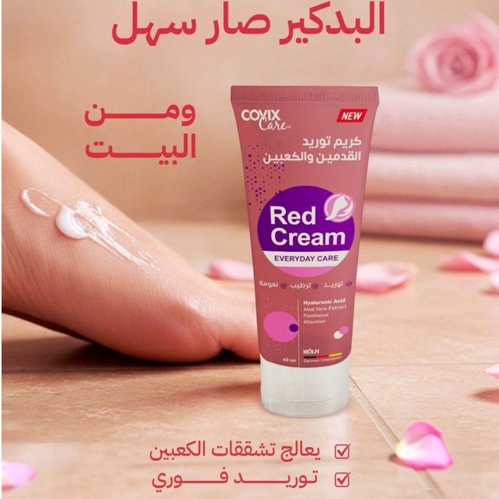 يساعد الكريم على ترطيب البشرة الجافة والمتشققة، تنعيم ملمس القدمين، وإضفاء لون صحي ومظهر أكثر إشراقًا للقدمين والكعبين، ليمنحك عناية يومية مثالية.