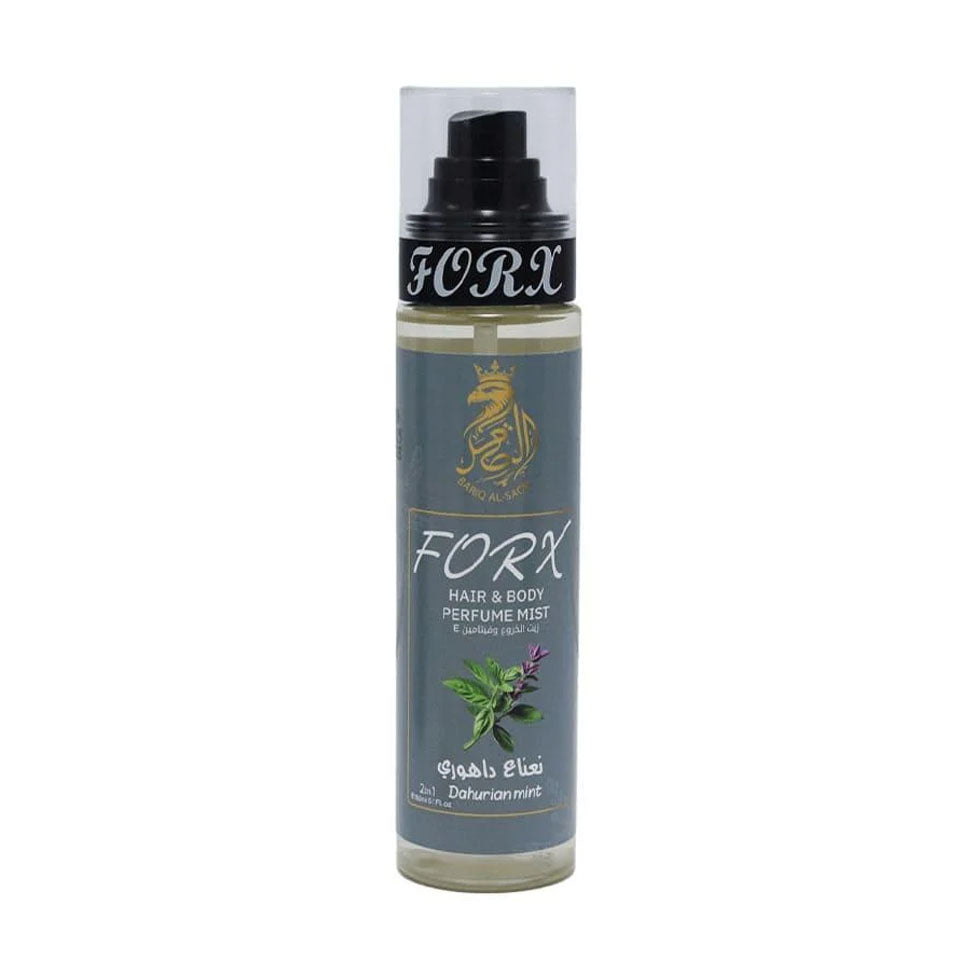 فوركس معطر للجسم والشعر برائحة نعناع داهوري يمنحك عبيراً منعشاً ينعش حواسك ويضفي إحساساً بالبرودة والانتعاش طوال اليوم. تركيبته الخفيفة تناسب الاستخدام اليومي على الجسم والشعر، لتمنحك رائحة متوازنة ومنعشة دون أي شعور مزعج أو أثر غير مرغوب.