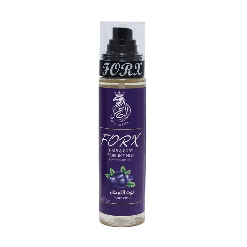 فوركس معطر للجسم والشعر برائحة توت اللوجان يمنحك عبيراً فاكهياً راقياً يضيف لمسة من الحيوية والانتعاش لكل يوم. تركيبته الخفيفة صممت لتناسب الاستخدام اليومي على الجسم والشعر، لتمنحك رائحة متوازنة ومنعشة دون أي أثر غير مرغوب.
