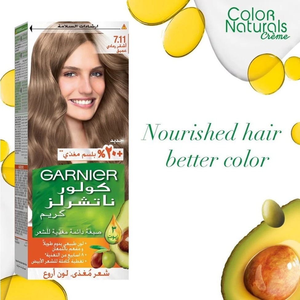 صبغة دائمة مغذية تمنح الشعر لونًا غنيًا بدرجة الأشقر الرمادي العميق (7.11)، مع تغطية كاملة للشيب. تتميز بتركيبة كريمية سهلة التطبيق، وتحتوي على مزيج من الزيوت المغذية مثل زيت الزيتون وزيت الأفوكادو وزبدة الشيا، مما يعزز نعومة ولمعان الشعر.
