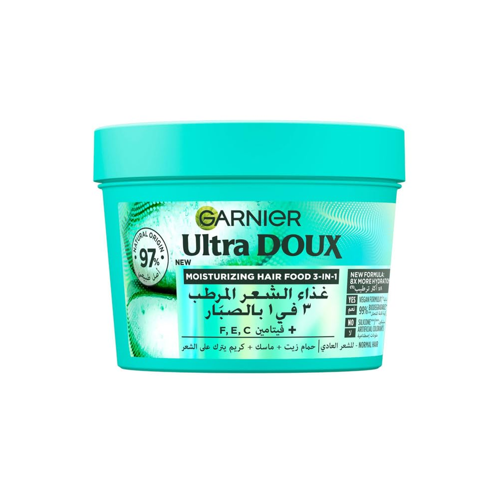 منتج جارنييه الترا دوكس غذاء الشعر المرطب 3 في 1 بالصبار وجوز الهند مصمم لتلبية احتياجات الشعر العادي، حيث يجمع بين فوائد الترطيب والتغذية.