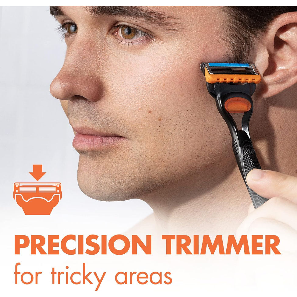 مجموعة حلاقة Gillette Fusion مصممة لتوفير حلاقة فائقة السلاسة مع تحكم دقيق وراحة عالية للبشرة. تتميز الشفرات بخمس شفرات رفيعة متقاربة تعمل على تقليل الضغط على البشرة، مما يقلل التهيّج ويمنحك نتيجة أكثر نعومة من أول تمريرة.